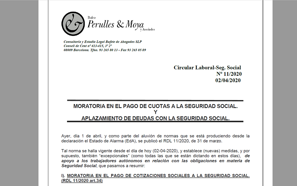 El nostre assessor laboral, Perulles & Moya ens ha fet arribar una circular laboral sobre les noves mesures de suport als treballadors autònoms.