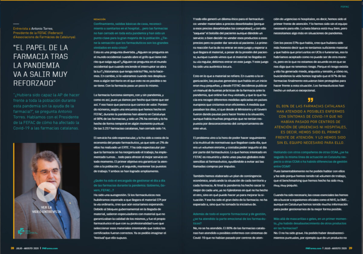 Llegir l’entrevista. PMFarma. Núm. 166 JULIO AGOSTO 2020. Página 28.