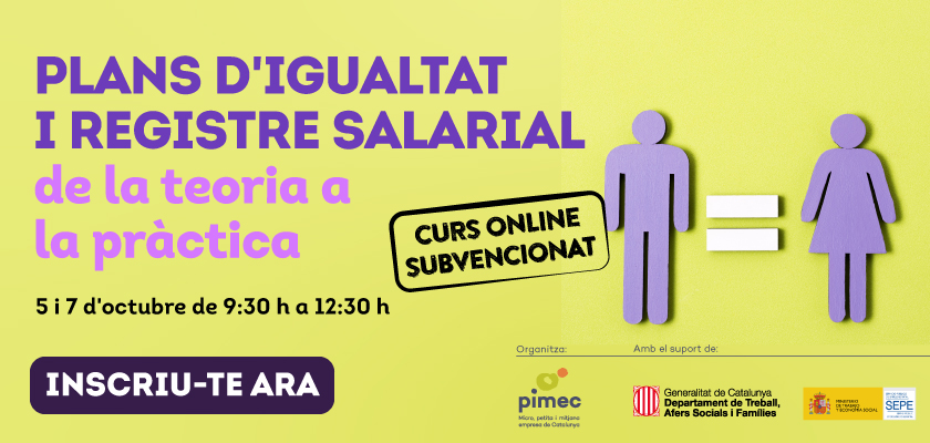 PIMEC ofereix el curs online de 6 hores “Taller Plans d’Igualtat”. Els socis interessats poden cursar-lo de manera totalment gratuïta realitzant el registre al web de PIMEC